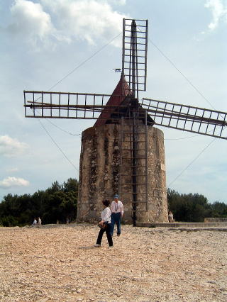 この後、ドーデの風車小屋を訪れました。前に言ったことにも関わらず、この建物にはいたく心を打つものがあります。オカブはアルフォンス・ドーデが好きで『風車小屋便り』と『月曜物語』は今でも愛読書です。ドーデがこの風車小屋にこもってプロヴァンスの風物を題材に短編集を執筆したのは史実ですが、粉挽きのコルニーユ親方と孫娘ヴィヴェットのお話は本当にあったかオカブには知る由もありません。多分、ドーデの創作でしょう。しばし、風車小屋の端にたたずみ愛すべき文学者を偲びました。
