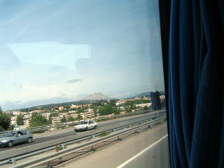 車窓から見たサン・ヴィクトワール山。セザンヌの画の