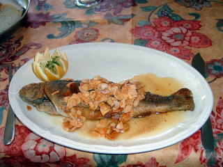 川鱒のムニエル・アーモンド。レモンを絞っていただく