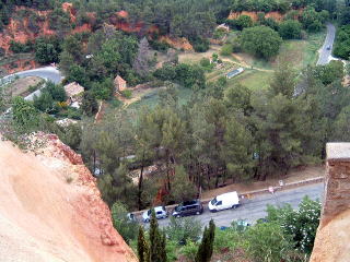 ルシオンのふもとの駐車場にバスを止めて、丘へ続く坂道を登ります。ここは赤土(オークル)の山として有名で、昔はこの土から顔料を作っていたそうです。丘の上の村にアイスクリーム屋があったので、ソフト・クリームを買ってなめていると、「また、食べてる(笑)」とオバハンが冷やかして通り過ぎます。本当に家の壁も真っ赤で、上から見下ろす赤土の壁は印象的でした。これから、また田舎道をひた走り、アヴィニョンに帰ります。