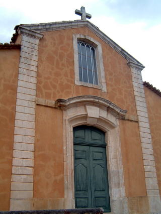 ルシオンの教会。壁が赤いのはご当地の赤土を使って建て