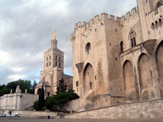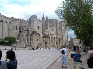 アヴィニョンの法皇庁と広場。バカンスシーズンの賑や