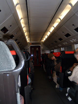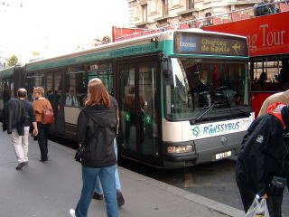 17:00、程なくバスがやってきて、オペラまでの乗車賃8.5ユーロを運転手に払うとレシートをくれます。2両つなぎのバスの中ほどに荷物を置く棚があり、スーツ・ケースはそこにしまうことが出来ます。バスは夕刻のパリ郊外から市内に入り渋滞もなく40分ほどでオペラのバス発着所に到着しました。