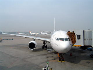 これから搭乗するエール・フランス機。国際線はエアバスが主