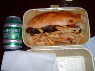 ケバブ屋でテイク・アウトしたアダナ・サンドとビール。ボリ