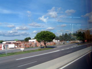 20分ほど待つと、エア・ポート~TGV駅~エクス・アン・プロヴァンスを結ぶナヴェット・バス(シャトル・バス)がやってきました。腹の下に、スーツ・ケースを収めて、運転手に4.5ユーロ払うと出発です。20分ほど田園風景の中を走りエクス・アン・プロヴァンスの街中に入っていきます。バス・ステーションで降ろされました。