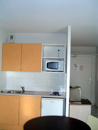 さすがにパリのホテルと違うのと、レジデンス・ホテルということで、大分、広々としています。ダブルベッドにソファが置かれた寝室兼リビング。調理用具、食器のそろったキッチンとダイニング。一人で占領するのは少々もったいないような気がします。まずは旅装を解いて、スーツ・ケースの中身を整理します。暑いのでシャワーを浴びました。