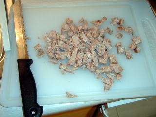 コールドミートを賽の目に細かく刻む。フランスの惣