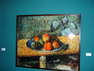 受付におねぇさんがいて、現代の様々な美術品が展示されています、と気を惹く説明をします。それでは、それがしは入場するつもりだから見学料はいかほどかと聞くと、無料とのありがたいお返事。それではお言葉に甘えてと中に入ると、現代写真やセザンヌの作品を模したフロッタージュなどが並べられています。道理で入場料が無料なわけです。