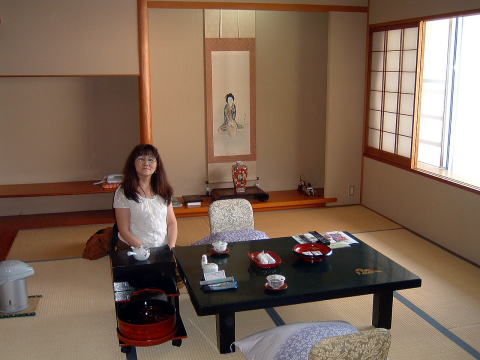 今回泊まる宿は、スタッフの対応も丁重で、非常に居心地のよい宿である。しかも、家から交通費片道1680円(各駅停車利用)で来られる経済的メリットは大きい。着いたのは2時過ぎで、正規のチェックイン時間は3時なのだが早速部屋に案内してもらう。部屋に入り、仲居さんの丁重な挨拶を受けた後、かーたんを部屋に残してオカブは早速風呂へ行く。