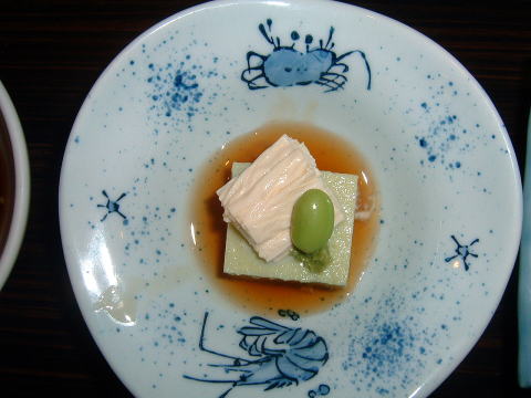 | 湯葉と胡麻豆腐、青豆の煮浸し。 |