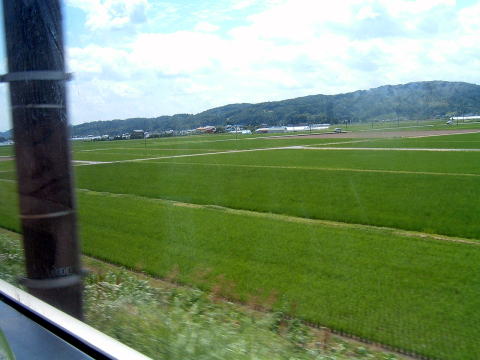 | 車窓に広がる水田。豊葦原瑞穂の国はいいものです。 |