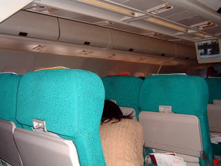 座席には個人用モニターがついていない。どうもこの辺はオ
