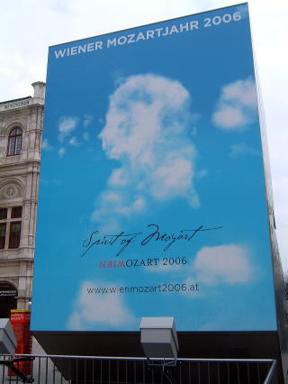 オペラ座の脇にモーツァルト・イヤー記念の立て看板があ
