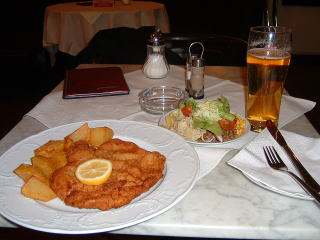 昼食のウィンナ・シュニッツェル。街角のカフェに