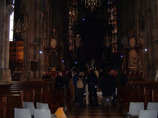さて、夜になりシュテファンへ。あまりにも悪い位置の席なので、25ユーロ払って40ユーロの席に替えてもらいました。「ヨハネ受難曲」の開演。4人のソロとオーケストラ、合唱。本格的な編成です。どうやら全曲やるらしい。エヴァンジェリストのアリアが素晴らしい。「ヨハネ」のテーマっていろいろな曲に使いまわされているんですね。