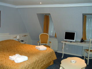 チェック・インを済ませると、5階(現地でいうところの4階)の屋根裏部屋があてがわれました。屋根裏部屋といっても十分満足のいく広さと、インテリアなのですが、前回と比べると少々見劣りがする印象です。