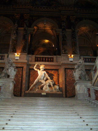 美術史博物館の正面階段。ハプスブルク家の富と