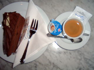 ご馳走に堪能して、デザートにザッハートルテとエスプレッソ。ディジェスティフにコニャックを取りました。