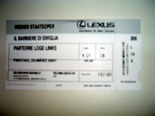 シュターツ・オパー『セビリアの理髪師』のチケット。ピンボケ