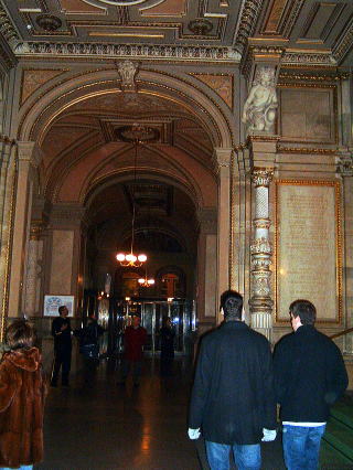 美術鑑賞も心行くまで楽しんで、ホテルに戻りオペラに行く準備に取り掛かります。一張羅のスーツをまとい、一番いいネクタイを結び、去年買ったばかりの靴を履くと、少しは馬子にも衣装でしょうか?