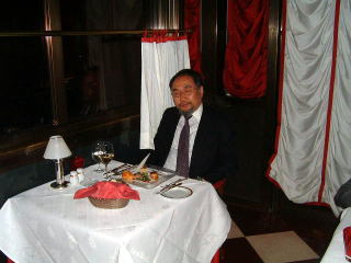 ザッハーの玄関を入って、レストランの入り口でこわごわ中を覗いていると、チーフ・ウェイターらし男が出てきて、「ミスター・オカブか?」と聞くから、「そうだ」と答えると、愛想良く、今日は貴方のために特別に最高の席をご用意しておきましたと、オペラ座に面したテラスの窓際の隅っこにある席に案内されました。