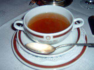 そこで、クリア・コンソメをもってこい、と言うと、心得ましたとばかりに「ドライ・シェリー入りでよろしいですね」と承ります。シェリー入りのスープなど初めてなので、気持ちが悪かったのですが、実際に飲んでみると意外といけました。