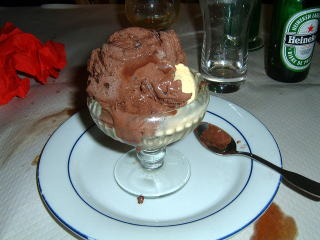 そこで、アイスクリームを頼むと、バニラとチョコレートのダブルがお薦めですよ、と無理難題をふっかけてきました。ギャルソンは逆らうと怖そうなお兄さんだったので、素直にお言葉通りにしました。あとは苦いコーヒー。