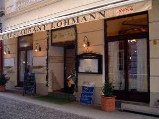 さて、夕食にとガイドブックで目星をつけていたグラーベンから脇に入った、スピーゲルガッセの『ゲットヴァイガー・シュティフトゥスケラー』というバイスルに行こうとしたのですが、どうしても見つかりません。そこで一本、奥の辻に入った『ロフマン』というレストランに入りました。ここで、オカブがまだ食べていない代表的ウィーン料理、ツヴィーベル・ローストブラーテン(おろし玉ねぎと白葡萄酒に漬けた牛肉をステーキにし、揚げた玉ねぎを載せたもの)を食べました。