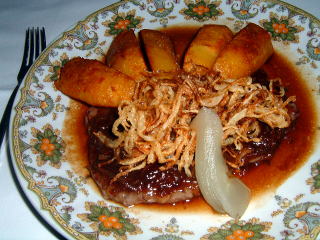 さて、メイン。メニューに「アニョー」とあるので仔羊かと思って、注文したらまたしてもツヴィーベルローストブラーテン。まあいいっか。