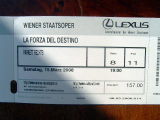 さて、今晩はシュターツオパーでベルディの歌劇『運命の力』の鑑賞です。この演目はプルミエということもあり、チケットがあっという間に売り切れ、観るのを諦めていたのですが、ふとカルチュラルのサイトを覗くとパルケットに一席、空があったので急いで予約したものでした。
