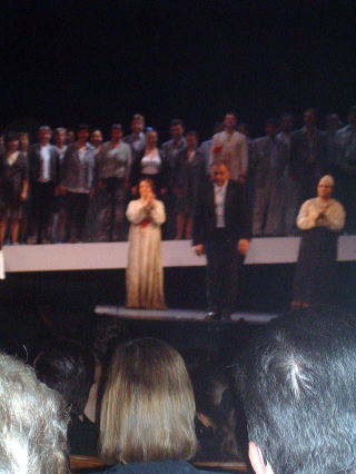 さて、舞台がはね、カーテンコールが佳境にさしかかると観客総立ちで、スタンディング・オベーションの嵐。