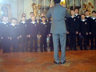 さて、ミサが終わり、観光客向けのサービスとして、ウィーン少年合唱団が祭壇の前に出て歌います。何十年前はこんなサービスはなかったのですが、このミサもすっかり観光客に媚びてしまったようです。しかし、オカブもしっかり写真を撮らせてもらいました。