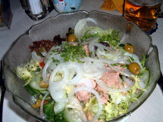 まずはビールで喉を潤し、ミックスサラダとフィアッカーグラーシュを。