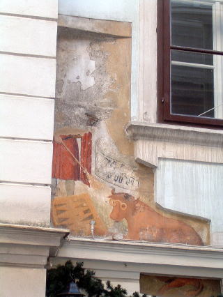 ベッカー街の牛がゲームに興ずる有名な壁画。