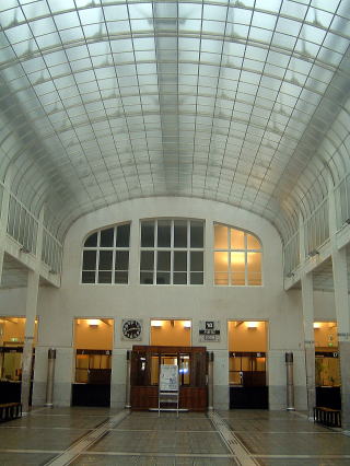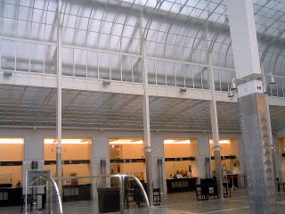 | 郵便貯金局内部。硝子の天井から射す天然照明が優しい。 |