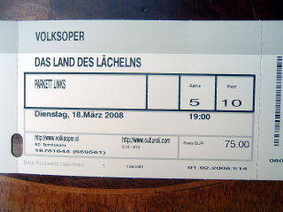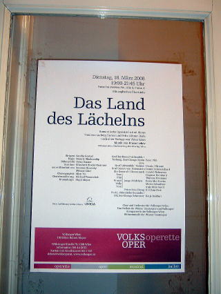 ホテルに戻り、着替えてオペラへ行く準備をします。(といってもフォルクスオパーなのでジャケットを羽織るくらいですが)今日の演目は、フランツ・レハールの『微笑みの国』です。ウィーンと中国を舞台にしたエスニック風味溢れるオペラです。Uバーン3号線でウェストバンホーフへ、6号線に乗り換えてヴェーリンガーシュトラッセ・フォルクスオパー駅まで行くのは勝手知ったる道です。