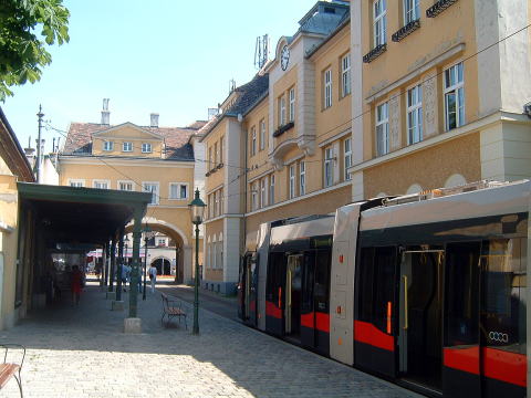 結構混んでいて初めは座れなかったが、徐々に空き、ウィーンの郊外の景色を眺めながら、結構な路面電車の旅。しかし、今日も 暑くてたまらん。電車の中はがんがんにエアコンがかかっている。それでも窓から射す強い日差しで暑い思いをする。