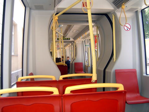| トラムの中。グリンツィングが近づくにつれ空いてくる。しかし物凄い暑さだ。 |