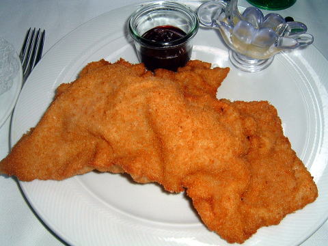 ここの店のシュニッツェルは、塩味がついていた。少々、塩辛い。