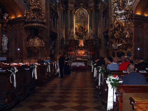 グラーベンに戻り、ペータース教会に行くと、結婚式のミサをやっていた。