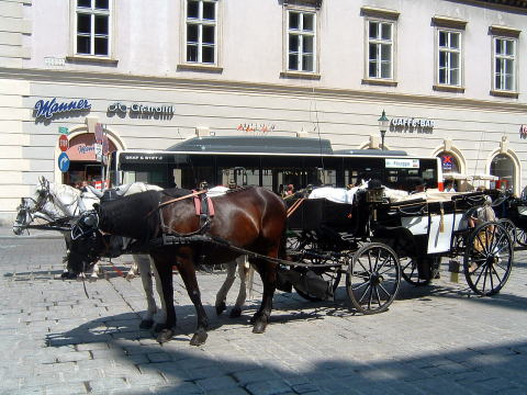 | シュテファン寺院の裏手。マンナーの店の前で客待ちするフィアカー。 |