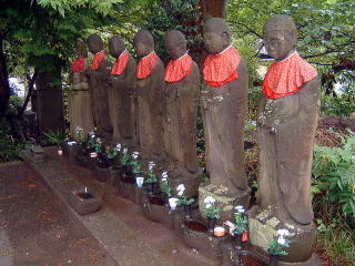 | 遊行寺の地蔵。供え物が生々しい。 |