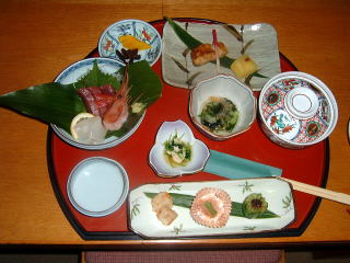 晩の料理。珍味と言えるものはないが、なかなか吟味されて