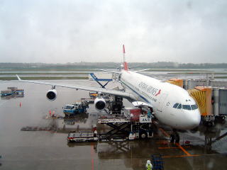 早朝5時起床。いつものこととて、朝食は摂りません。雨が強く降っています。かーたんも起きてきてくれました。荷物と、パスポート、航空券を持ったかしっかりチェックして家を出ます。下北沢までタクシーで行くことにし、表通りまでかーたんが傘をもって送ってくれました。いつもながら優しいかーたん!新宿から成田エキスプレスに乗りますが、満員状態です。千葉のあたりで車内販売が回ってきたので恒例の赤ワイン400円也を買って旅の前祝をします。ところで、インターネット上でたくさんの海外旅行記が出回っていますが、どうも旅の出だしをはしょったものには興ざめです。できることなら前の晩の情勢から・・・・たとえば晩御飯を何を食べたかとか・・・・書いてほしいのに、ひどいものになるといきなり目的地のホテルから旅行記が始まります。旅は出かける前のあのわくわく感がなんとも言えません。願わくば、せめて空港へ行く道中の描写から始めてほしいものです。成田に8時過ぎに着いて、チェックイン。航空券を係員に差し出すとマイレージはいかがですか?と聞かれました。何気に仮カードを作ってもらいましたが、その後またウィーン経由でミンスクに行く機会があったので、おかげをもって現在1万8千マイル貯まりました。何事も試してみるものです。さて、出国手続きえお済ませ、毎度のこととてカフェで生ビール大をあおって、免税店を冷やかし、定刻通りOS52の機上の人となるのでした。
