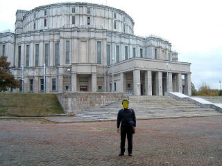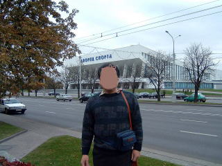 スポーツ・センターを背に。さすが旧ソ連だけあって