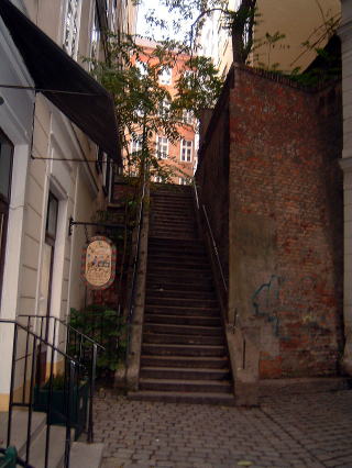 「トストマン」脇の階段。趣があるので新婚旅行の時写真