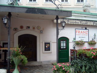さて、夕食。朝、ドミツィルの隣のケーニッヒ・フォン・ウンガルンの前を通りかかったら、「ゲームの季節になりました」と張り紙があるのを見つけました。メニューを見てみるとなかなか美味しそうなです。ウィーンでジビエもよかろうと、予約しておきました。レストランに入るとヘルが待ち構えていて、セットしてあるテーブルに案内してくれます。アペリティフのキールロワイヤルをなめなめ、アントレにターフェル・シュピッツのテリーヌ、メインを鴨に決めました。ワインは1/2ℓのローテワインのカラフ。最初に出てきたのは、恐ろしい量の野菜スティックと山羊のチーズのアミューズ・グール。アントレも恐ろしい量。やっと腹に収めて、鴨が出てきて終わりかと思ったら、その鴨は前段階の皿で、その後、夥しい量のカネロニとともに大盛りの鴨肉の本番が出されました。行ったことはありませんがトゥール・ダルジャンでもこのように鴨攻めに遭うのでしょう。デザートに無理やりアイスクリームをとり、珈琲でやっと一息つけました。しめて51ユーロ。鱈腹、飲んで食べた割には格安なお値段です。