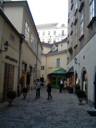 もうこれ以上、何も口に入らないという状態になって、歩くのもやっとの思いだったのですが、いつまでもカフェで粘っているわけにもいかないので、街に出ました。オペラ座やシュテファンの裏手あたりを歩き回って、喉のあたりまで食べ物が詰まった満腹感を紛らせました。細い小路にある何気ない古い建物、趣きある横丁などが印象に残りました。