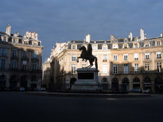 ヴィクトワール広場。ルイ14世の騎馬像。周囲は高級